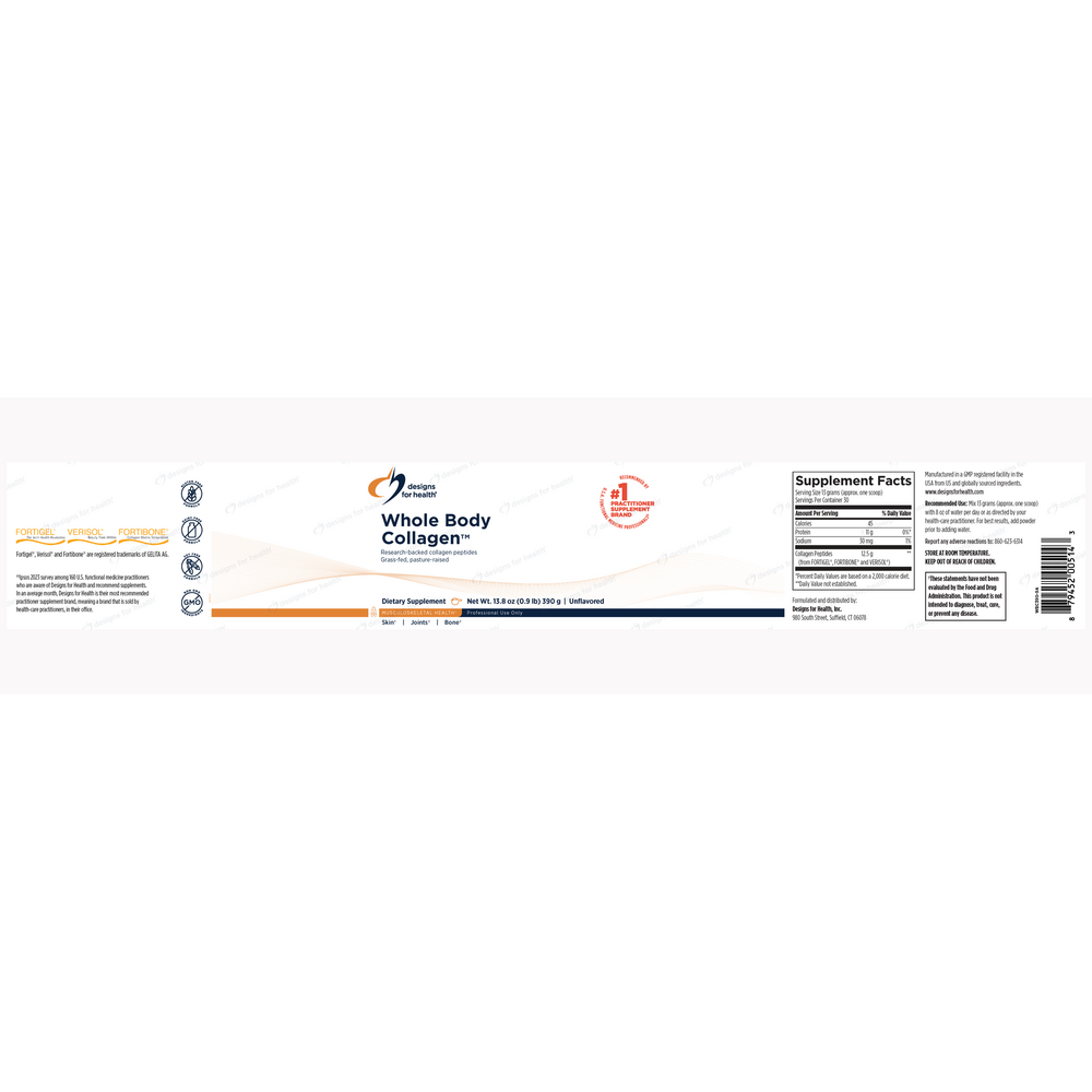 Whole Body Collagen contains a unique blend of three patented collagen peptides supported by clinical research showing their efficacy for supporting collagen production, bone strength, joint health and integrity, skin elasticity and more.*