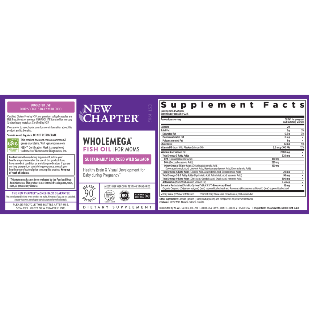 Now more than ever, you’re naturally seeking to nourish your baby with the perfect foods & supplements. Discover Wholemega for Moms fish oil from New Chapter, expertly formulated with 17 Omega fatty acids to support your baby's healthy brain and eye development—and also support your own positive mood, calm & heart health.* For prenatal DHA during pregnancy or an Omega supplement to take when nursing, Wholemega for Moms includes essential Omega 3s as well as natural Vitamin D3. *These statements have not been evaluated by the Food and Drug Administration. This product is not intended to diagnose, treat, cure, or prevent any disease.