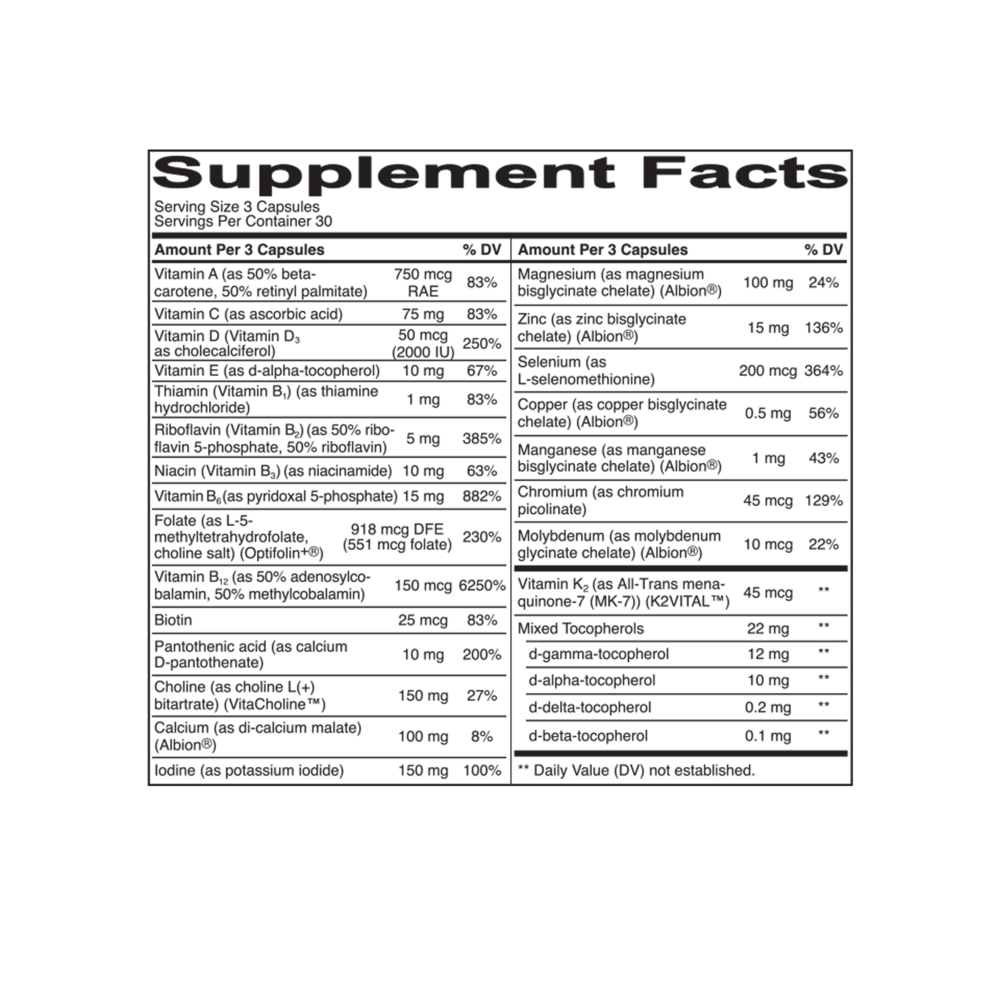Our Women’s Multi is designed with optimal dosages and forms of 23 vitamins and minerals to support overall women's health.*